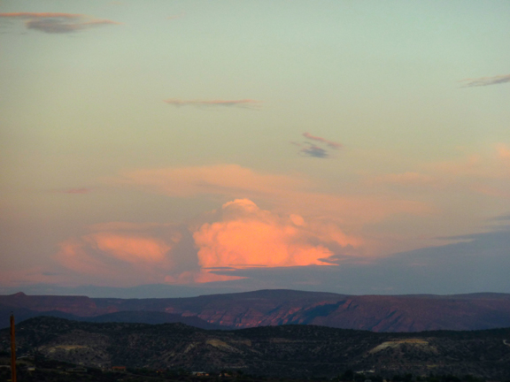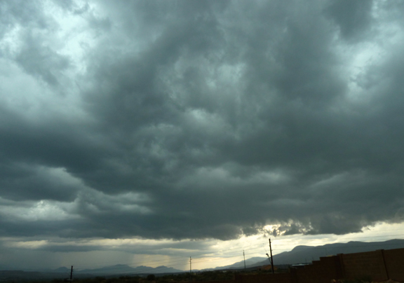 It’s raining like mad here in the Verde Valley. The clouds roll in and hide the mountains and buttes.