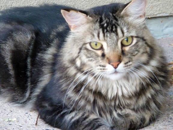 I met this cool cat while I was out. He reminds me of my kitty Tiger, but much more calm. Buddha Kitty with a sweet mew.
