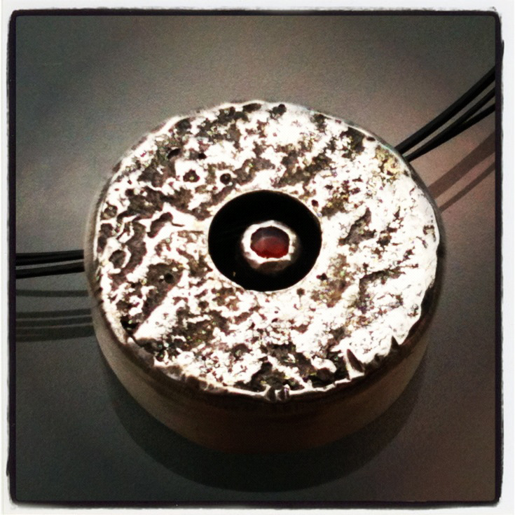 Reticulated Silver and Garnet Hollow Form Pendant