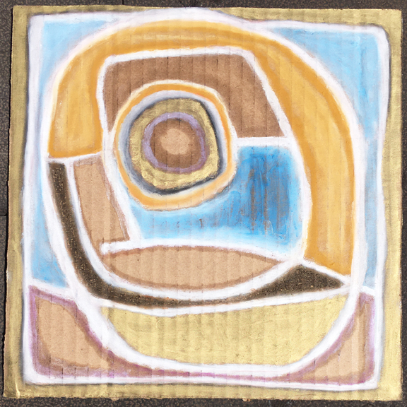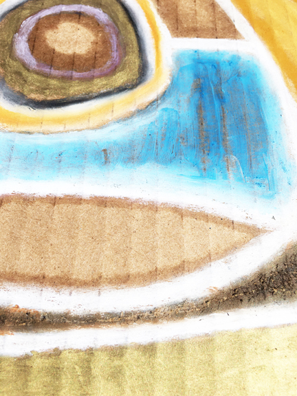 I am enjoying the ribbing in the cardboard, how the paint and color behave on the surface texture.