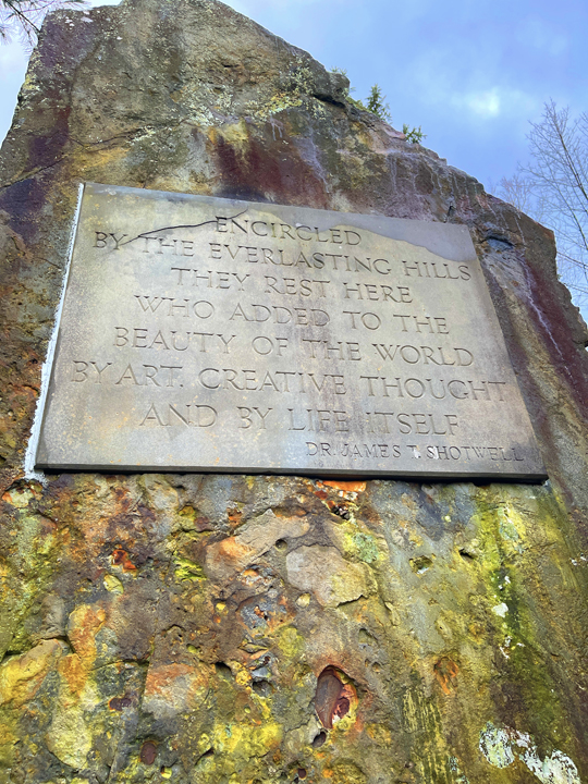 Read More“Encircled by the everlasting hills they rest here who added to the beauty of the world by art, creative thought, and by life itself.” – Dr. James Shotwell